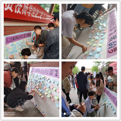 5月8日中午,第二届“5.25我爱我”心理健康月之心灵广场活动在学生宿舍2、3栋通道处举行。