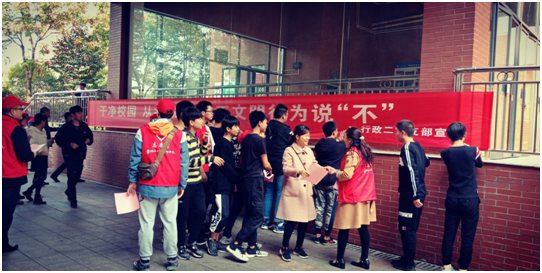 为配合心博官方网站_XINBO(中国)关于开展乱扔垃圾行为专项整治活动,营造干净、美丽、舒适的校园环境,11月8日,行政二支部开展了以“干净校园 从我做起 向不文明行为说‘不’”为主题的倡议、签名活动,支部全体党员参加了此次活动。心博官方网站_XINBO(中国)院长陈洪星、党委副书记肖翔、副院长唐懿、易幸育等到场郑重签名。号召全院师生加强品德修养,养成良好习惯,树立绿色文明理念,爱护校园环境,爱护教室、寝室公物,争做文明师生。
