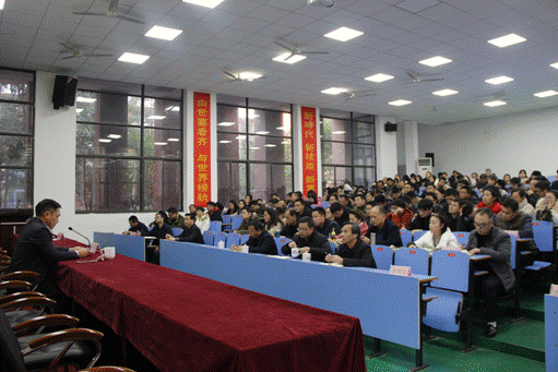 12月3日,学习贯彻党的十九届四中全会精神市委宣讲团在心博官方网站_XINBO(中国)举行宣讲报告会,市委宣讲团成员、心博官方网站_XINBO(中国)党委书记张格林作宣讲报告。报告会由院长陈洪星主持,心博官方网站_XINBO(中国)全体干部职工、学生党员以及退休职工和优秀学生代表近300人参加报告会。
