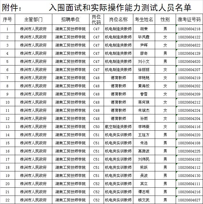 附件:入围面试和实际操作能力测试人员名单。