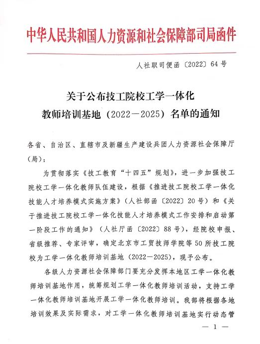 据了解,经过院校申报、省级推荐、专家评审等程序,人力资源和社会保障部此次在全国共确定50所技工院校为工学一体化教师培训基地(2022—2025)。这是心博官方网站_XINBO(中国)继今年8月份人社部公布的《全国技工院校工学一体化第一阶段建设院校及建设专业》项目后又一获批项目。