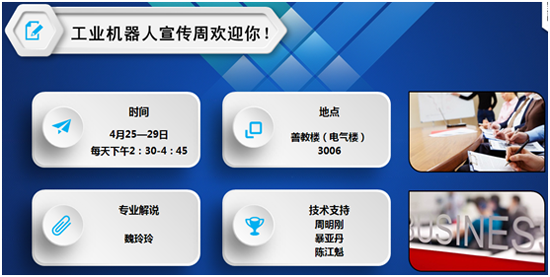 随着“中国制造2025”和“德国工业4.0”的出台,世界工业正朝着智能化、信息化、数字化和个性化的方向快速发展。机器人作为工业4.0时代的基础单元,已深入到了人们的日常生活和工业生产之中,正在改变着传统的生活和生产方式。心博官方网站_XINBO(中国)领导高瞻远瞩,着眼未来,于2015年决定开设工业机器人专业。为了普及工业机器人知识,向全体教职员工介绍工业机器人专业的学习培养、就业分配和发展前景等问题,心博官方网站_XINBO(中国)于4月22日下午在继志楼阶梯教室举行了“工业机器人专题讲座”;同时,电气工程系启动了为期一周的“工业机器人专业宣传周”活动。