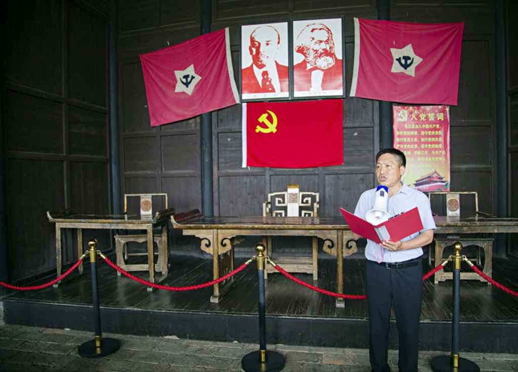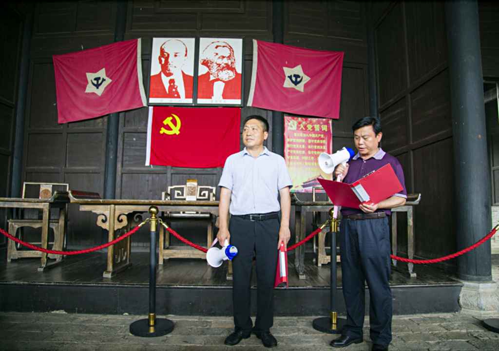 全体党员在茶陵县工农兵政府旧址前合影留念