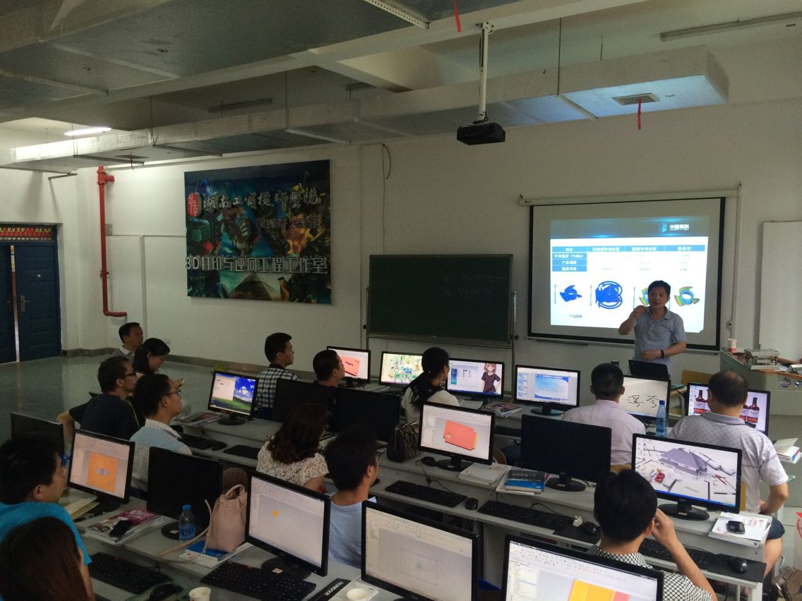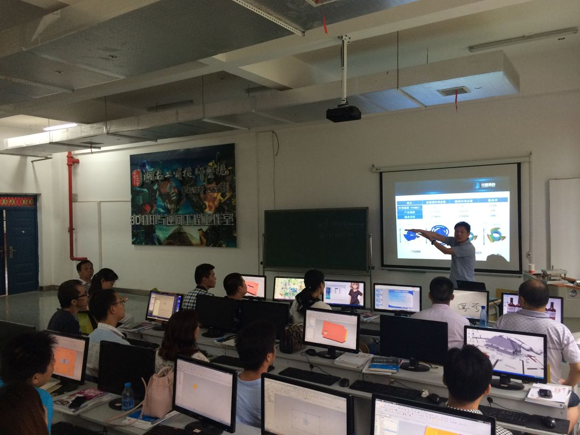 时间很快就到下午,主办方特约邀请到硕士生导师、华曙高科副总、长沙理工大学教授陈勃生给我们授课。陈教授用生动活泼的语言介绍了当今新兴行业-----3D打印技术,这也是此次培训的重头戏,从发展到成熟再到工厂的大量采用,无不透漏出此行业所孕育的巨大潜力,更为重要的是一下将这个昨天我们还在陌生的行业与技术,今天就带到了我们面前。讲座后,主办方安排了我们与陈教授面对面的答疑与互动交流。温涛温总针对心博官方网站_XINBO(中国)3D打印工作室所陈列的全省技工院校为数不多的3D打印机进行了具体介绍,更加加深了我们对此次培训的浓厚兴趣。