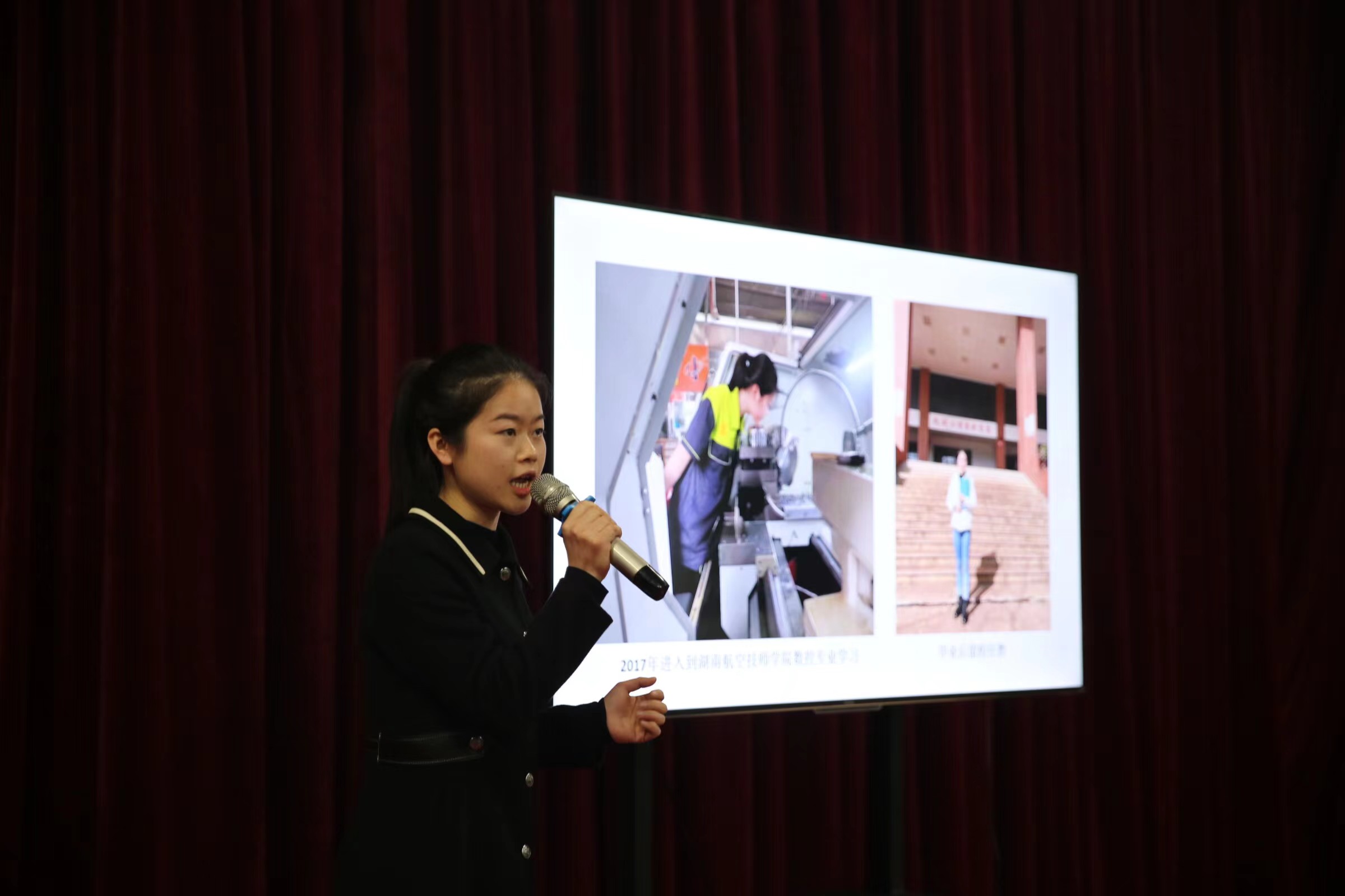 “全国技术能手”、第二届全国职业技能大赛铜牌、湖南省第一届职业技能大赛金牌获得者、湖南航空技师心博官方网站_XINBO(中国)青年教师罗淑芬以《选择》为题,分享了她从一名怀揣梦想苦练技能的学生成长为帮助学生实现技能梦想老师的成长历程,激励所有学生努力学习本领通过掌握一技之长实现人生价值和技能梦想。