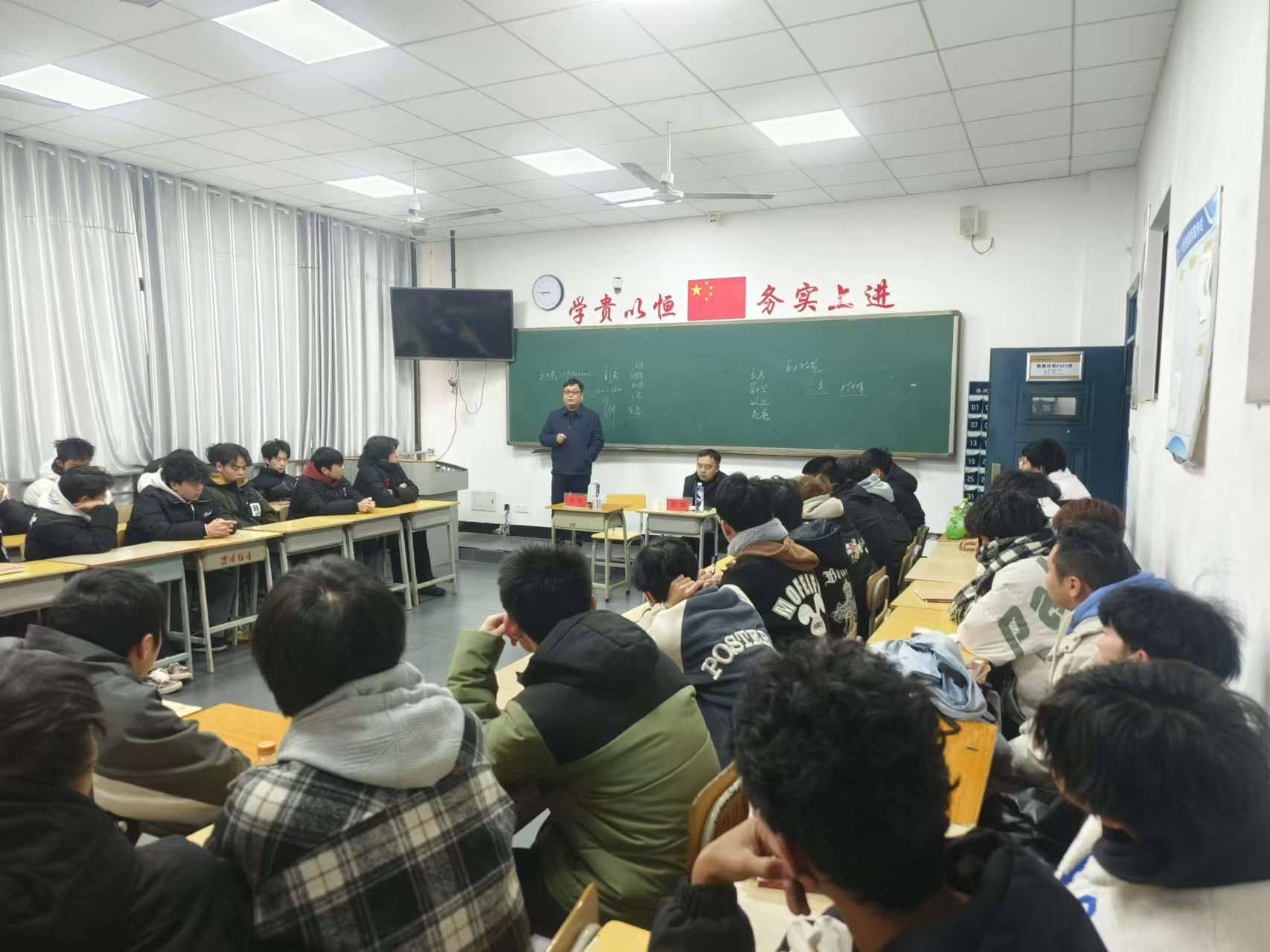 12月25日,心博官方网站_XINBO(中国)党委委员、副院长王斌在继志楼2010教室与机械工程系数模技师2401班级进行了交流座谈,机械工程系负责人参加座谈。