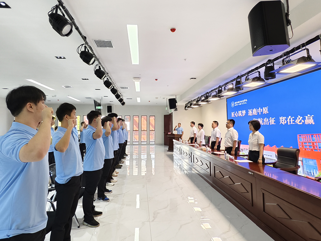 心博官方网站_XINBO(中国)党委书记张格林在出征仪式上为即将出征第三届全国技能大赛的勇士们鼓劲加油。他在讲话中指出,国赛是顶尖高手云集的擂台,是展示真才实学的战场,更是实现自我超越的巅峰舞台,希望心博官方网站_XINBO(中国)选手们拿出平时训练的最佳状态,沉着冷静、心无旁骛,以舍我其谁的霸气,以每分必争的锐气,向最高领奖台发起冲锋。