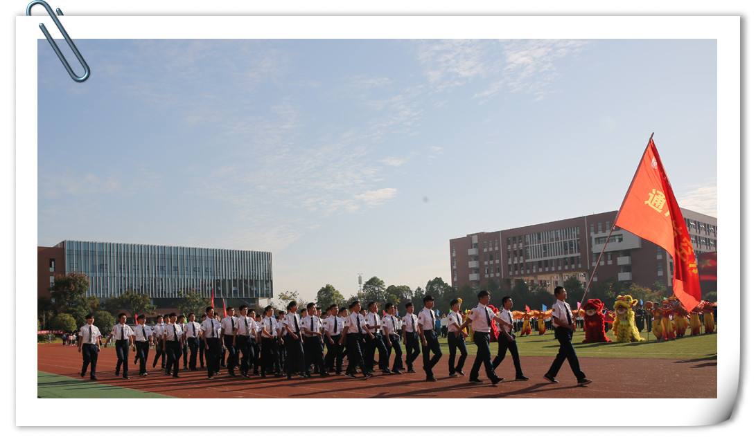 在蓝天白云绿草的映衬下,各个专业组成的方块队踏着铿锵有力的步伐向主席台,向师生们展示他们的自信和热忱,他们坚定的身影撒在明媚的绿茵场上,耀眼而不失美丽。
