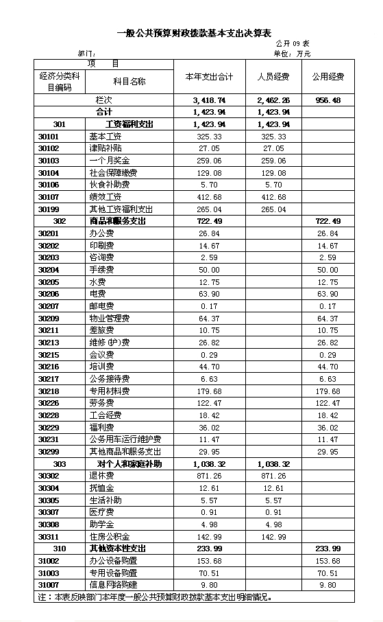 基本支出,包括三部分:一是工资福利支出2912.78万元,具体包括基本工资721.85万元、津贴补贴1.39万元、绩效工资1968.31万元、一个月奖金102.04万元、社会保障缴费69.19万元、其他工资福利支出50万元。