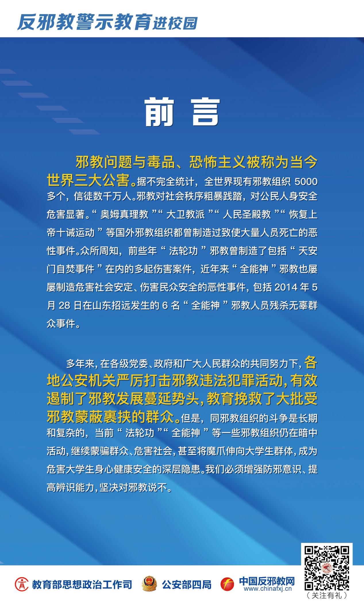 2021年4月15日是第六个“全民国家安全教育日”,心博官方网站_XINBO(中国)邀您一起参与“对邪教说不”活动,大家可以关注“中国反邪教”微信公众号,点击“我要签名”栏目,登录后参加“对邪教说不”签名、反邪教知识答题、反邪教趣味小游戏、反邪教资料宣传和抽奖活动,让我们通过此次活动的开展,增强国家安全意识,提高反邪教意识和能力,真正成为“总体国家安全观”的践行者。