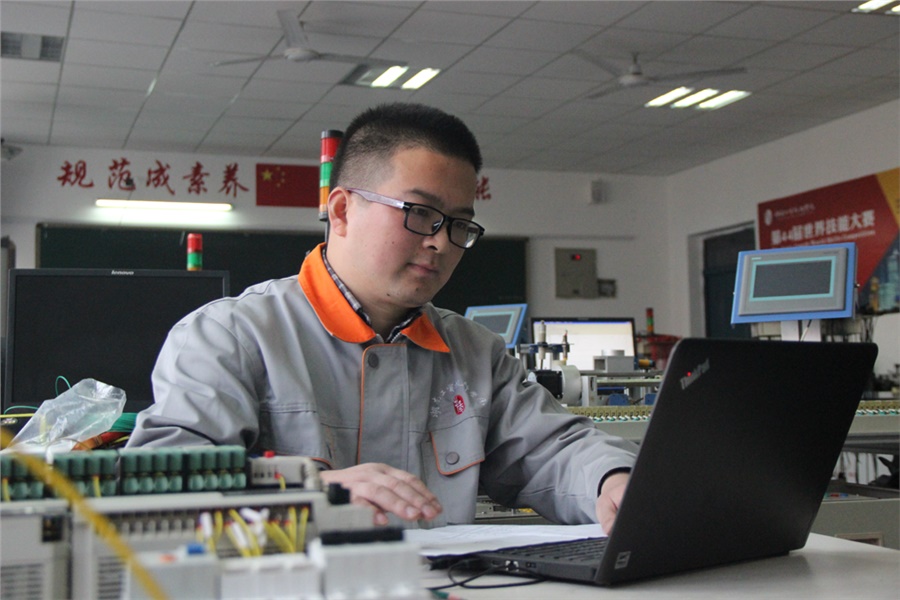 张志老师指导机电世赛班学生参加训练