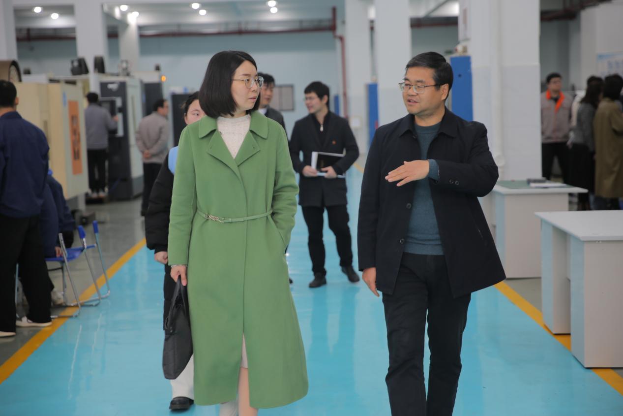 江泓一行首先参观了心博官方网站_XINBO(中国)世赛、数控等实训场地,详细了解了心博官方网站_XINBO(中国)的特色专业、实训条件和办学成果。