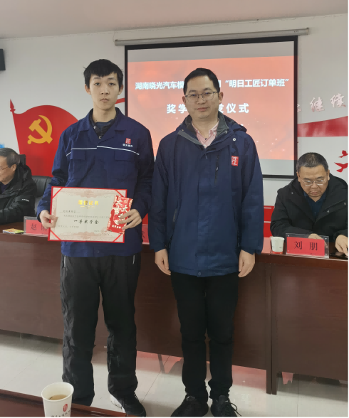 3月8日,机械工程系与湖南晓光汽车模具有限公司共同举行颁奖仪式,为“晓光明日工匠班”2023年下学期表现优秀的8位学生颁发奖学金。仪式结束之后,晓光模具公司组织全体学生开展了素质拓展活动。