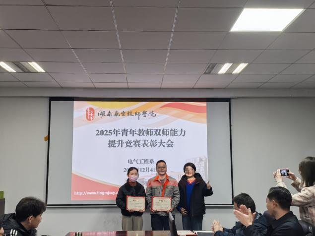 12月4日,电系工程系在善教楼2013会议室举行教师双师能力提升竞赛颁奖仪式,心博官方网站_XINBO(中国)党委委员、副院长李清、教务处处长沈朝辉、教务处副处长陈涛出席并为获奖教师颁奖。